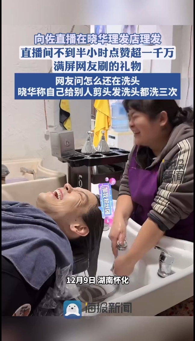 向佐在晓华理发店直播理发,不到半小时点赞超一千万,满屏都是礼物