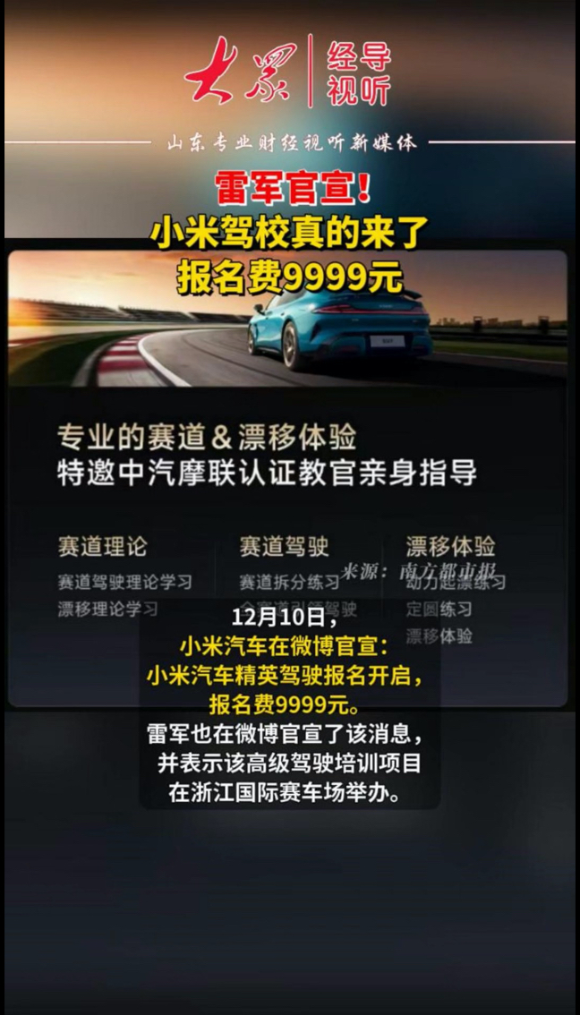 雷军官宣!小米驾校真的来了,报名费9999元