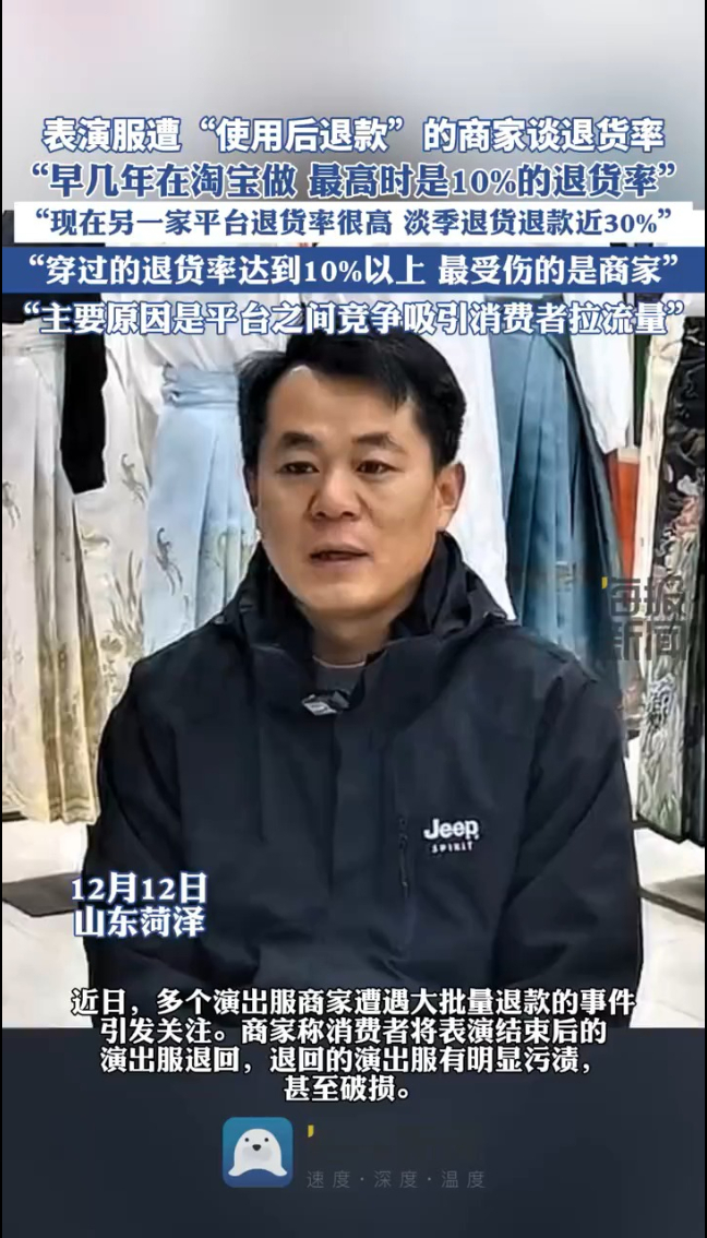 表演服遭“使用后退款”的商家谈退货率