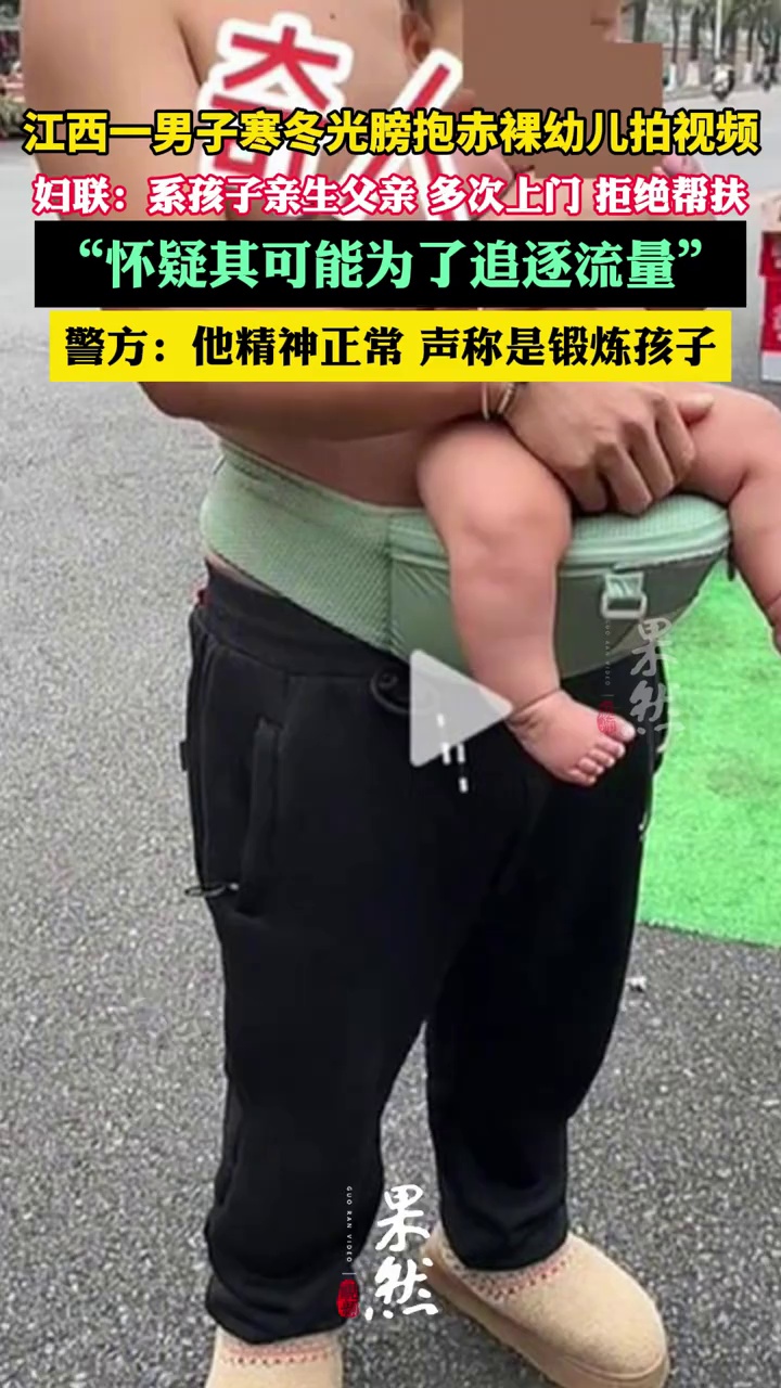 男子冬天抱赤裸幼童上街称是锻炼孩子