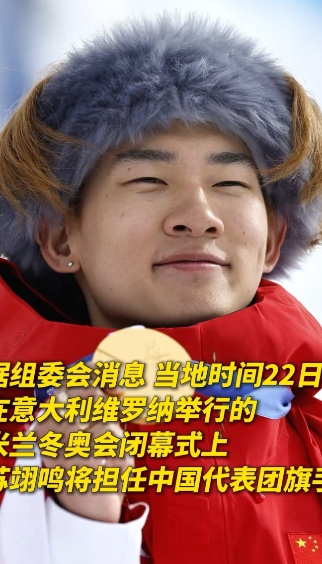苏翊鸣将担任米兰冬奥会闭幕式中国代表团旗手