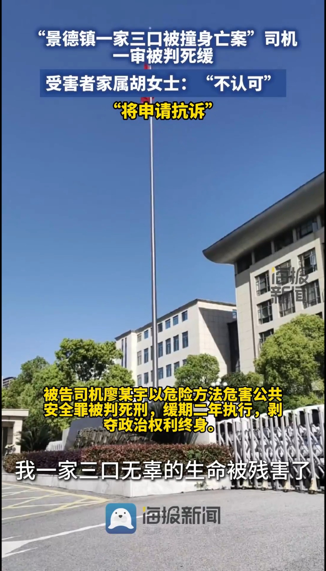 “景德镇一家三口被撞身亡案”司机一审被判死缓 受害者家属:将申请抗诉