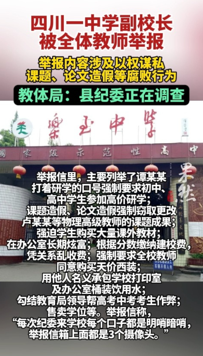 果然视频|四川一副校长被全体教师举报,教体局:县纪委正在调查