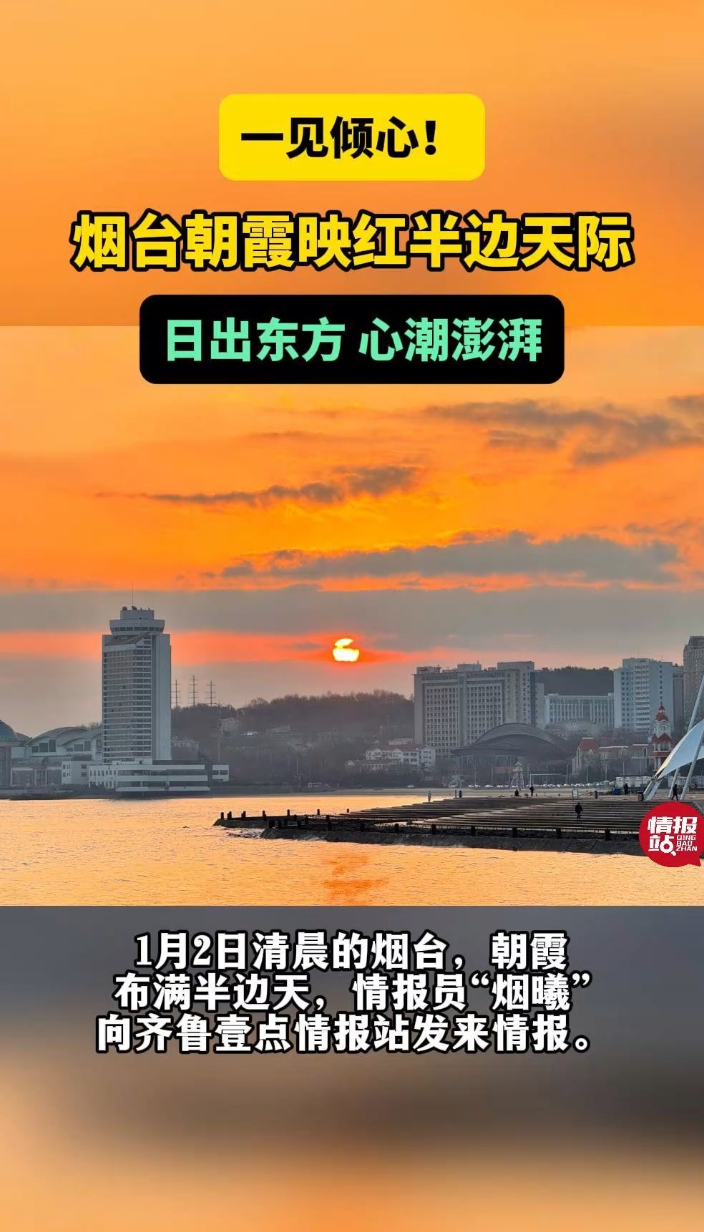 天气情报站|日出东方心潮澎湃!烟台朝霞映红天际仿佛绚丽油画