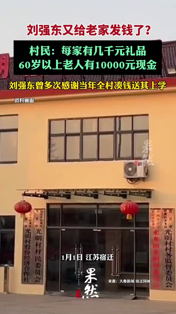 刘强东又给老家发钱了?村民:60岁以上老人有一万现金