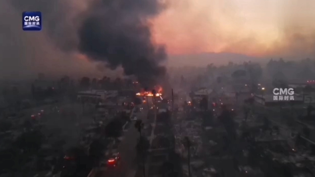 果然视频·看天下|航拍洛杉矶山火:多地同时燃烧,数千建筑被毁