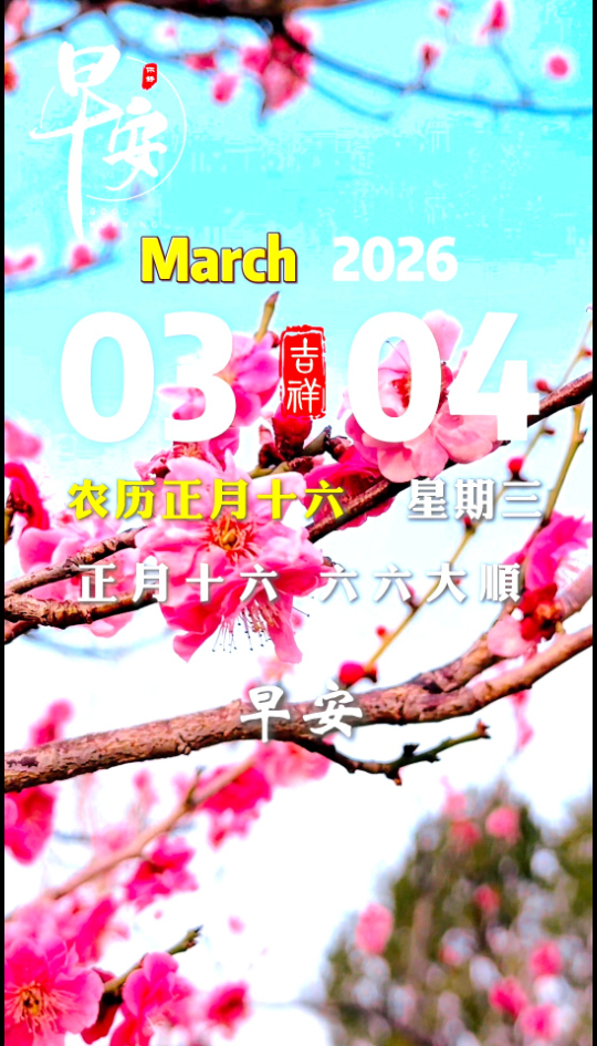【早安聊城】2026年3月4日 星期三 农历正月十六 早安!马到功成,万事胜意。新的一天,愿您日子清欢,岁岁长安!
