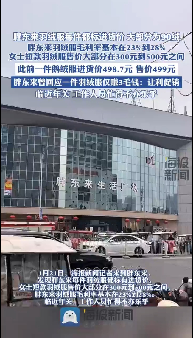 胖东来羽绒服每件都标进货价 大部分为90绒