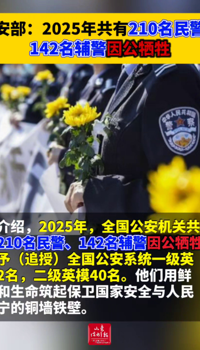 公安部:2025年共有210名民警、142名辅警因公牺牲