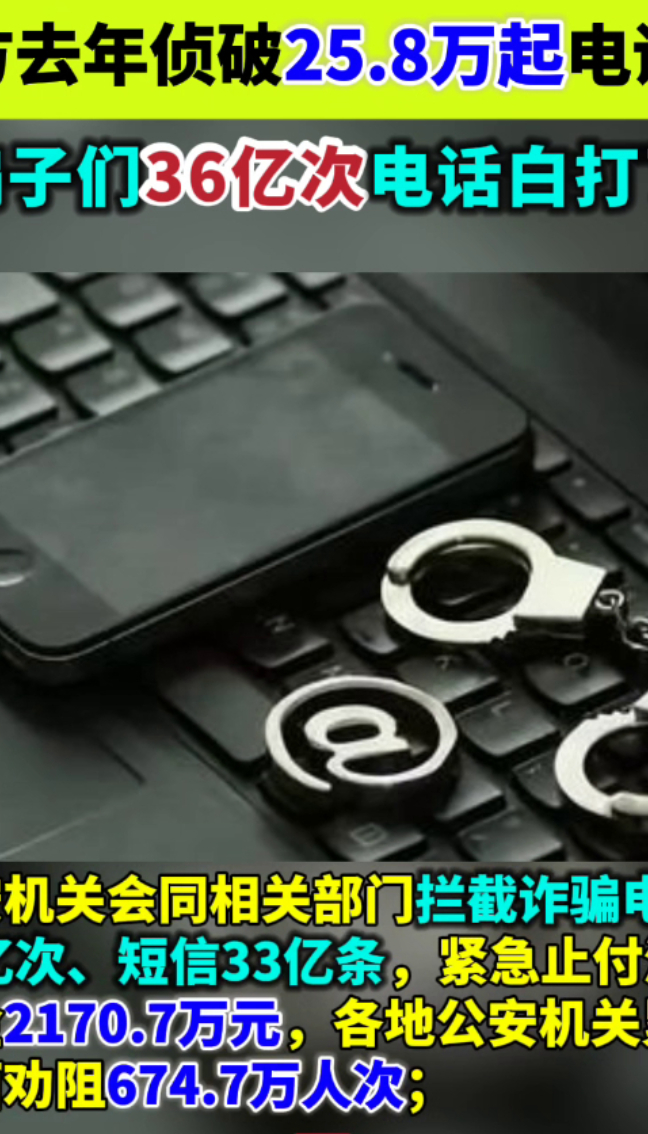 警方去年侦破25.8万起电诈案 骗子们36亿次电话白打了
