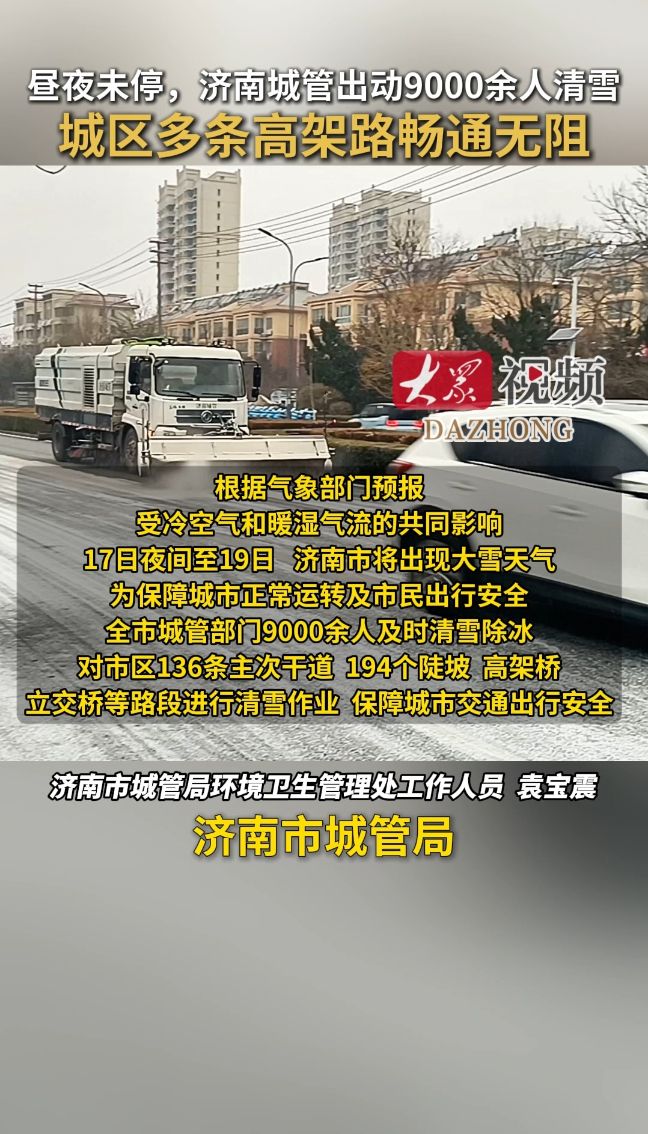济南城管出动9000余人清雪,城区多条高架路畅通无阻