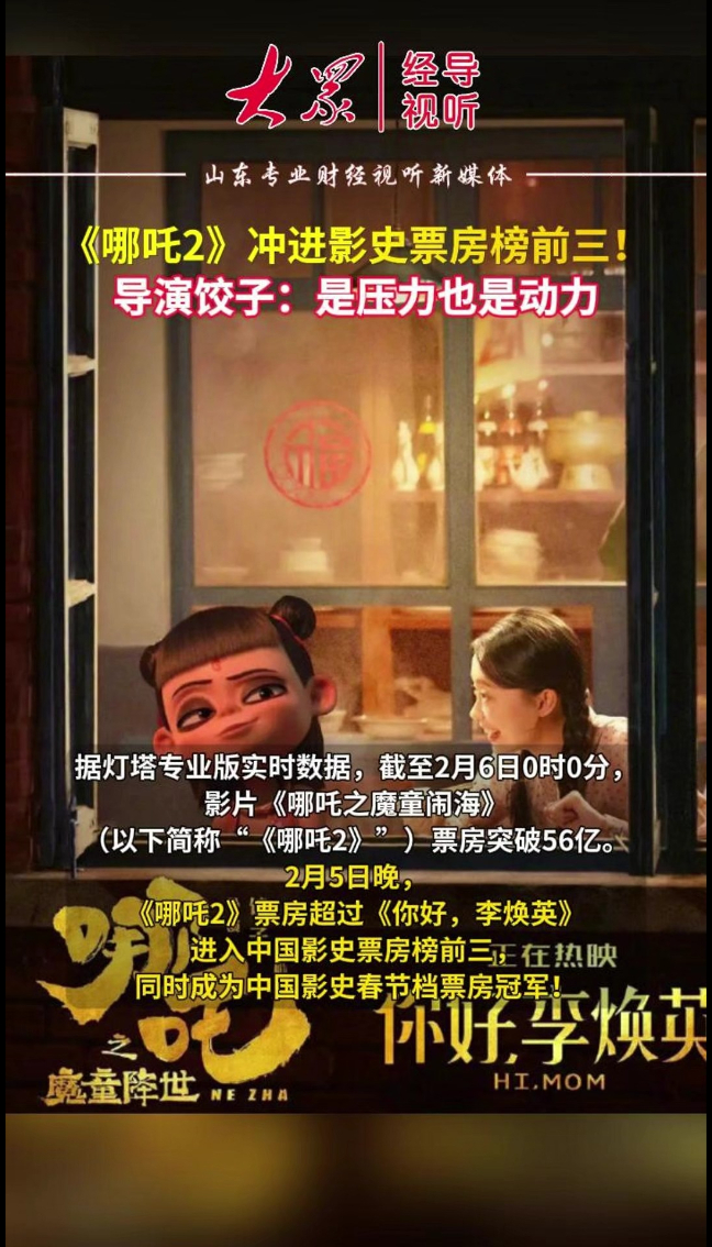 《哪吒2》冲进影史票房榜前三!导演饺子:是压力也是动力