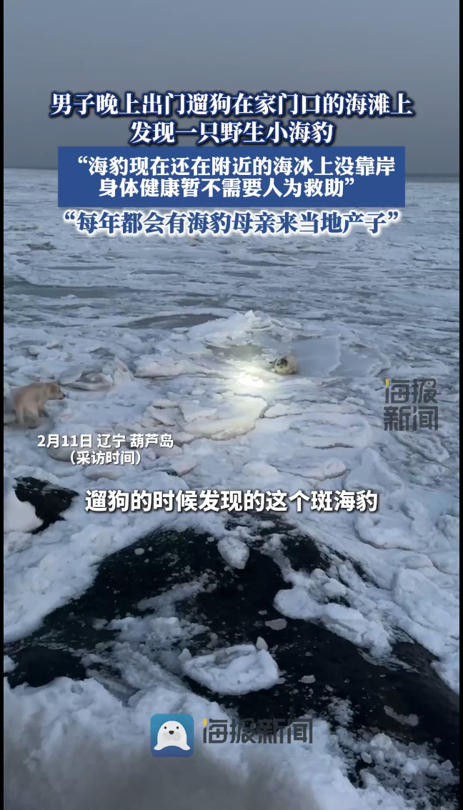 男子晚上出门遛狗在家门口的海滩上发现一只野生小海豹,当事人称每年都会有海豹母亲来当地产子