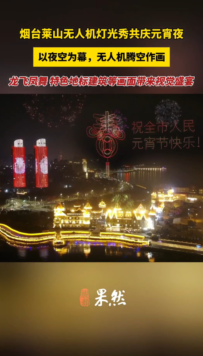 果然视频|视觉盛宴!烟台莱山无人机灯光秀共庆元宵夜