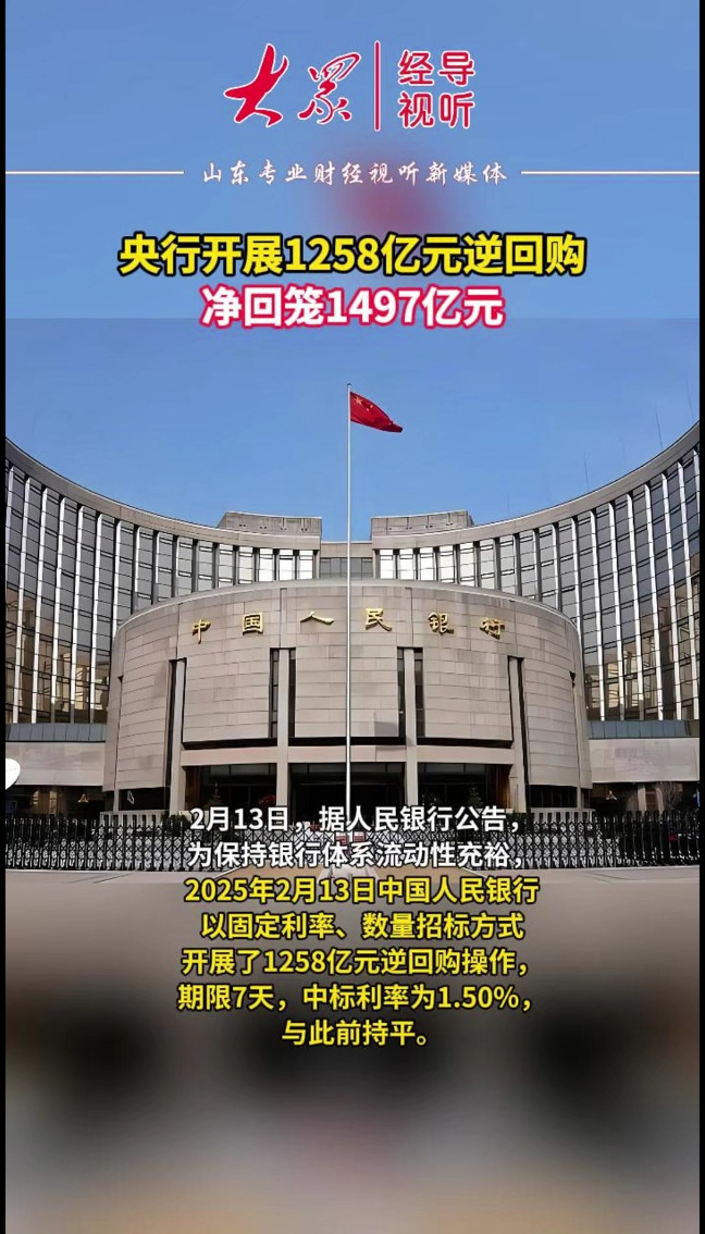 央行开展1258亿元逆回购,净回笼1497亿元