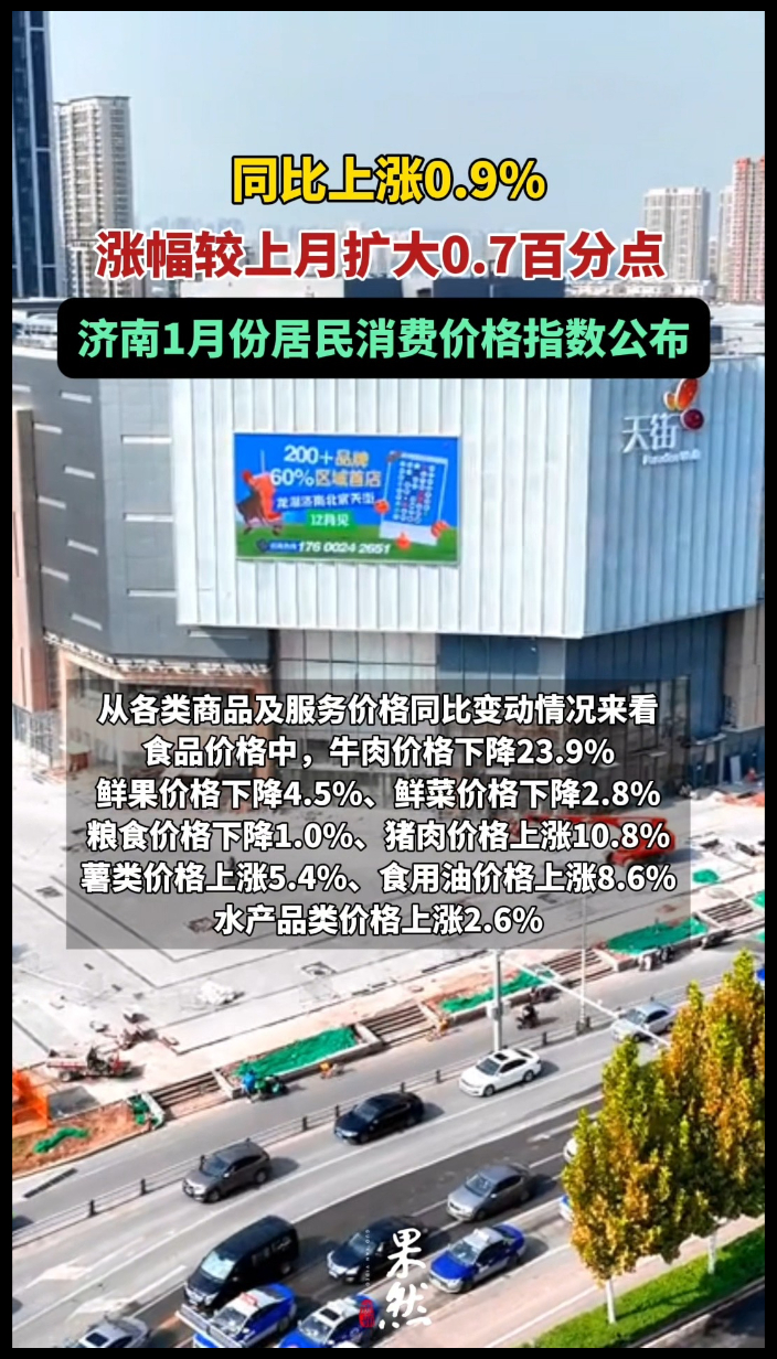 果然视频|济南1月份居民消费价格指数同比上涨0.9%