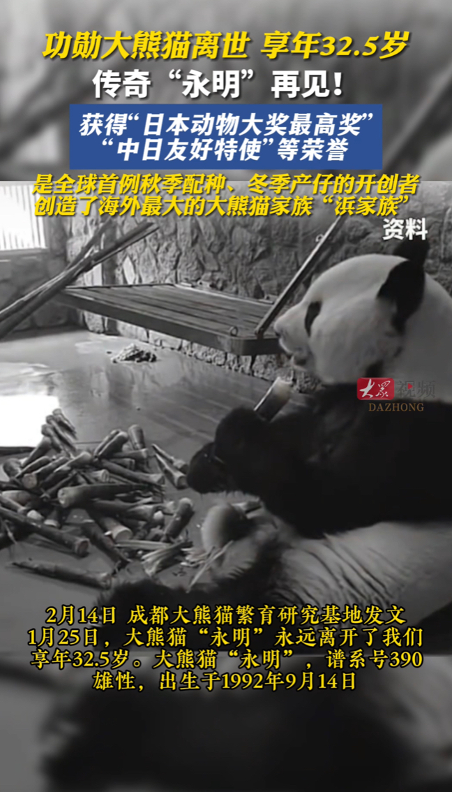 热点|功勋大熊猫离世 享年32.5岁 传奇“永明”再见!