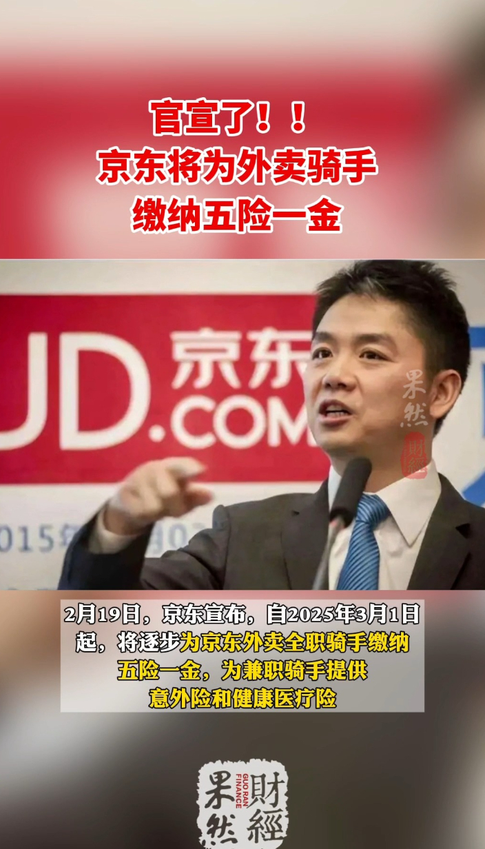 果然财经|官宣了!京东将为外卖骑手缴纳五险一金