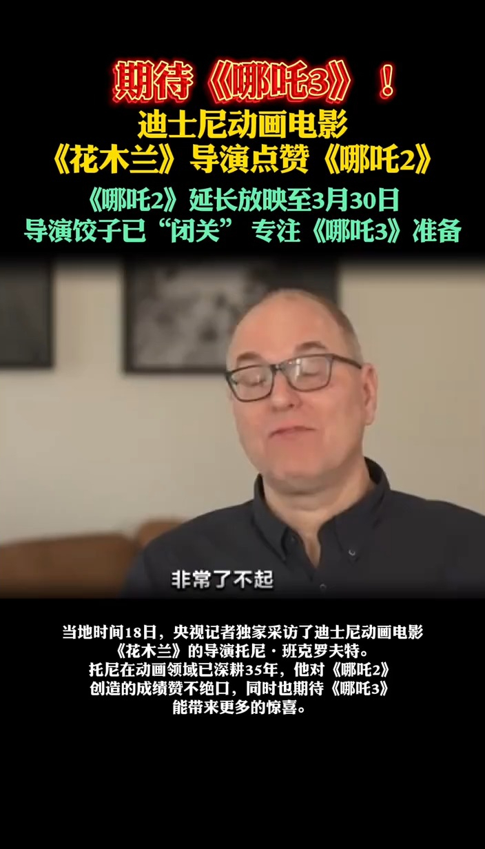 迪士尼动画电影《花木兰》导演点赞《哪吒2》!《哪吒2》延长放映