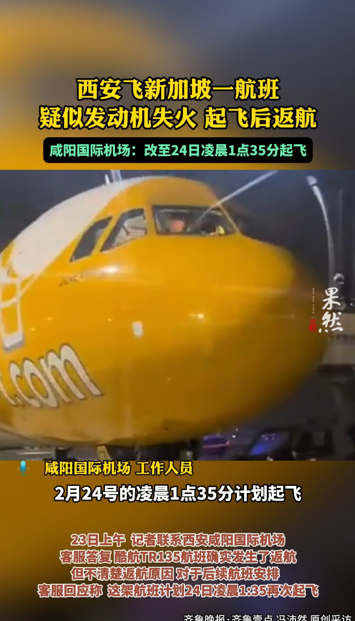 果然视频|西安飞新加坡一航班紧急返航,机场:改至24日起飞