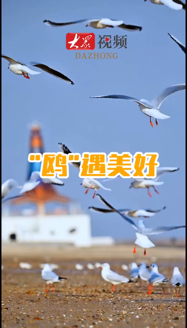 海鸥展翅伴人游!日照海洋美学馆海滩好热闹