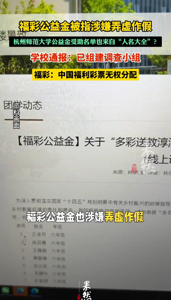 果然视频|杭师大福彩公益金名单被指作假,学校、福彩回应