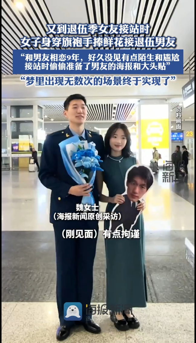 女子身穿旗袍接退伍男友:“和男友好久没见有点尴尬,梦里出现无数次的场景终于实现了”