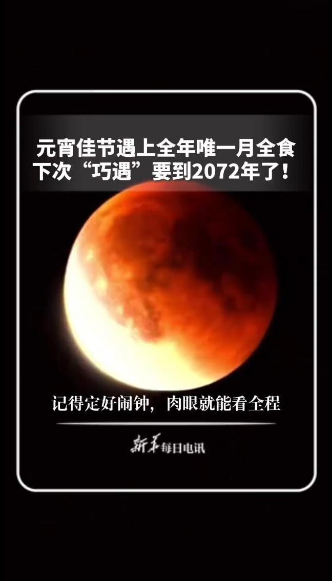 元宵佳节遇上全年唯一月全食,下次“巧遇”要到2072年了!