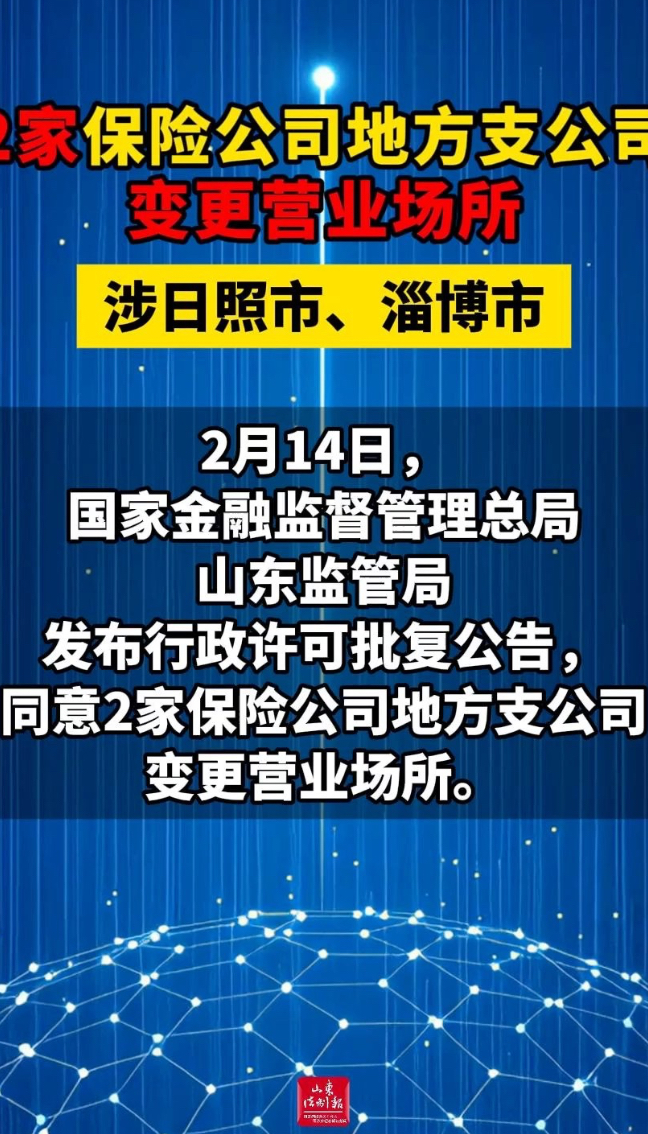 2家保险公司地方支公司变更营业场所 涉日照市、淄博市
