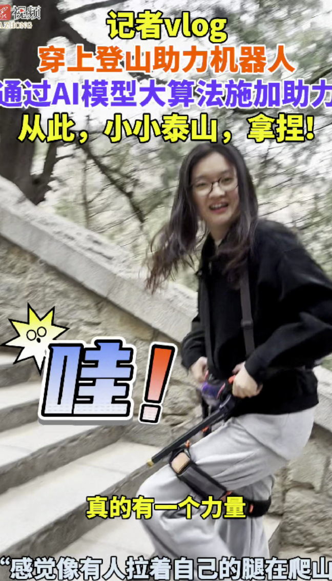 记者vlog|穿上登山助力机器人,从此,小小泰山,拿捏!