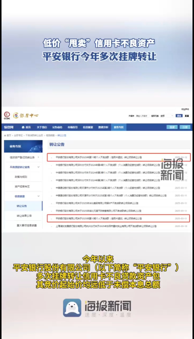 低价“甩卖”信用卡不良资产 平安银行今年多次挂牌转让