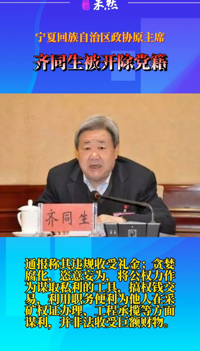 观政视频|贪婪腐化!72岁正部级“老虎”齐同生被开除党籍