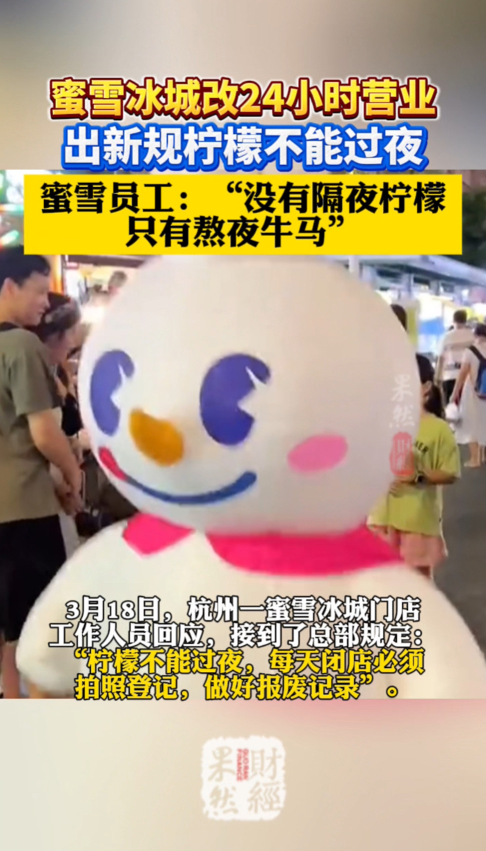果然财经|蜜雪冰城改24小时营业,出新规柠檬不能过夜