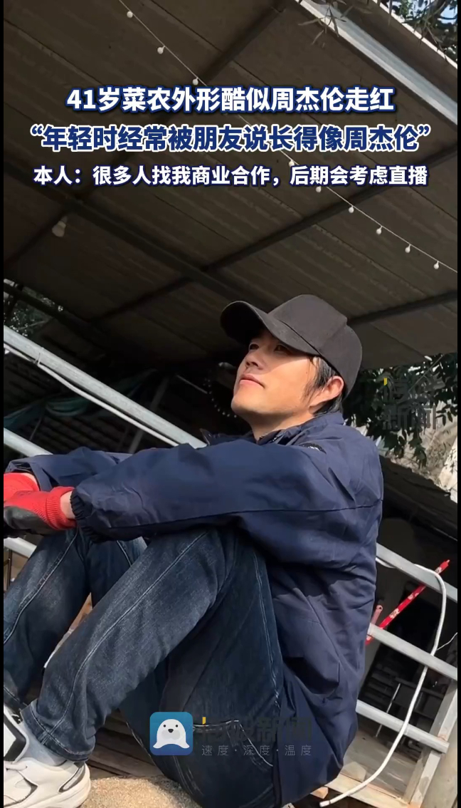 41岁菜农外形酷似周杰伦走红:现在很多人找我商业合作,后期会考虑直播