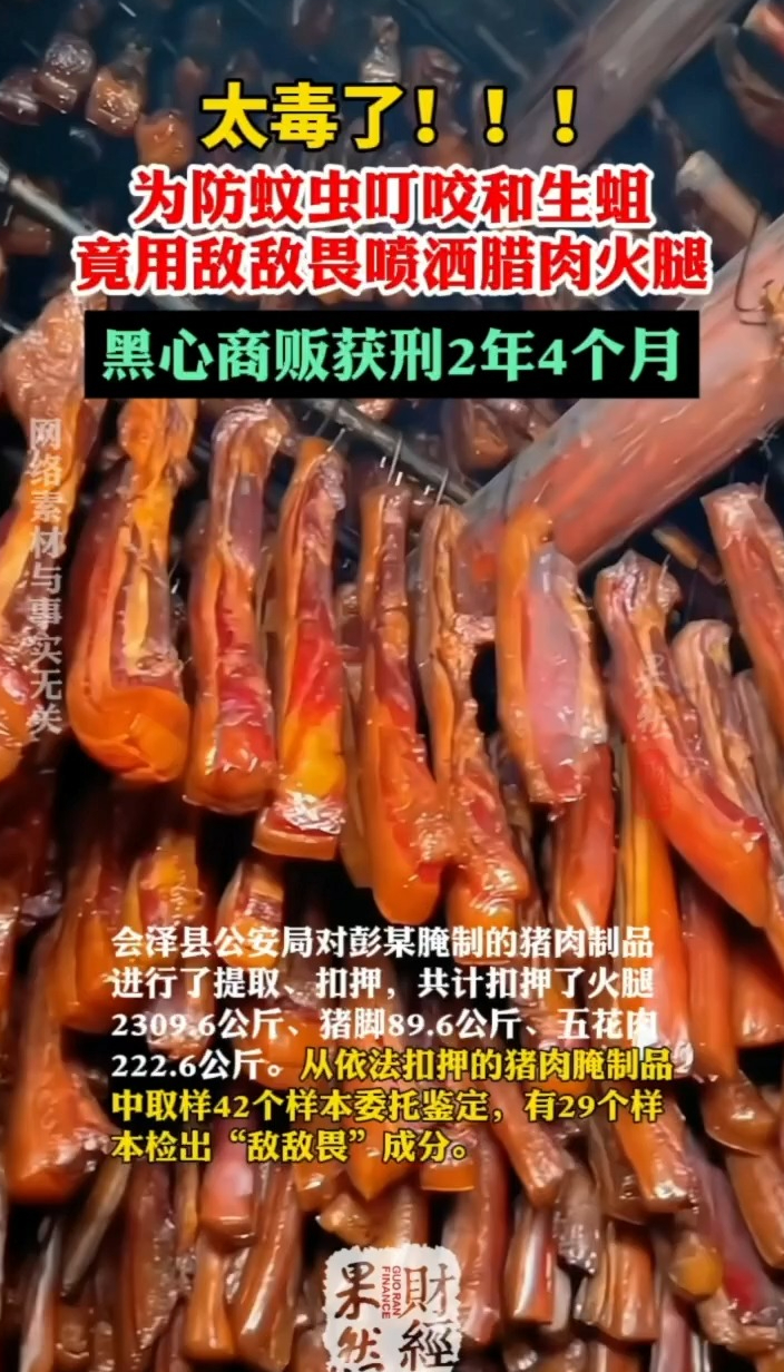 果然财经|用敌敌畏喷洒腊肉火腿,黑心商贩被判刑2年4个月