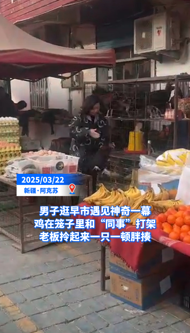 热点|男子逛早市遇见神奇一幕 鸡在笼子里和“同事”打架 老板拎起来一只一顿胖揍
