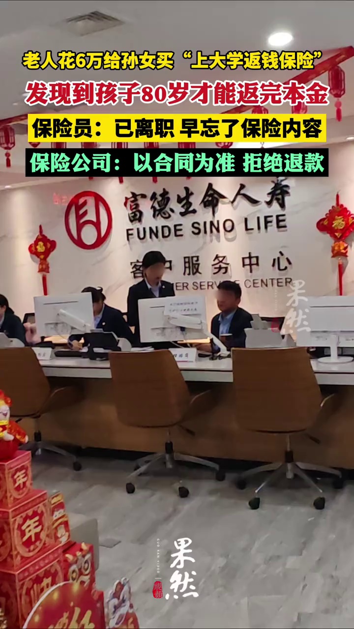 老人花6万给孙女买“上大学返钱保险”,发现到孩子80岁才能返 完本金(大风新闻)