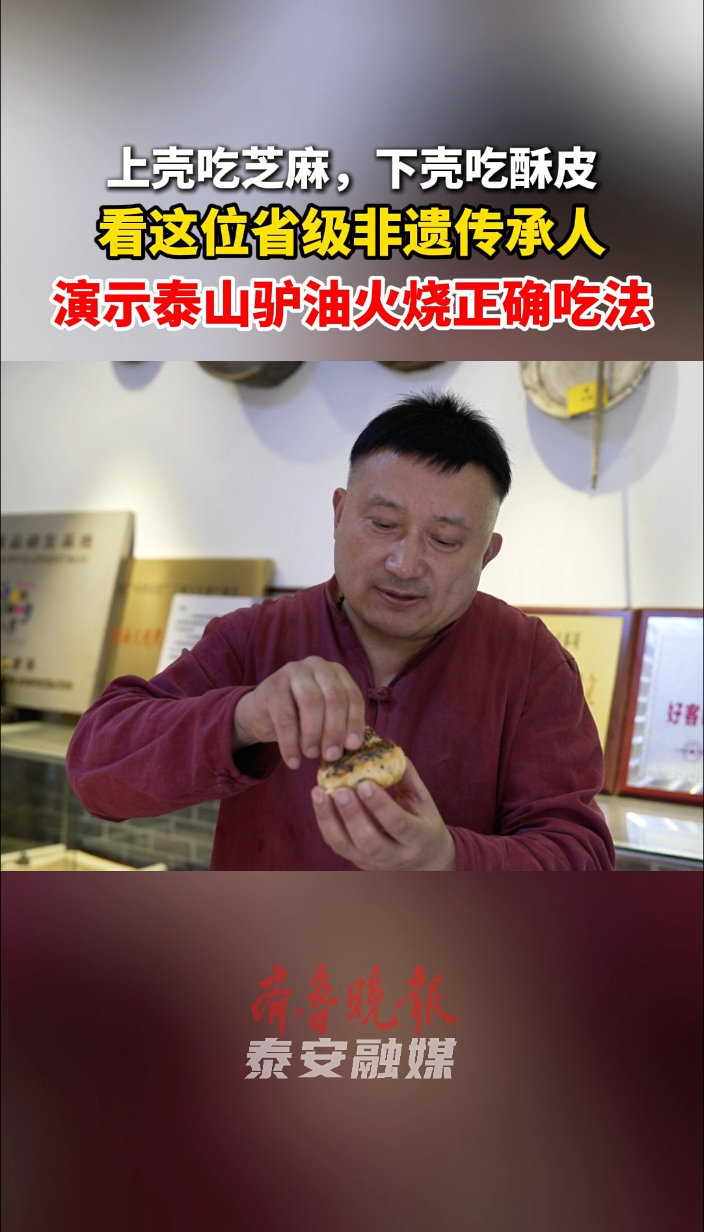 果然视频丨上壳吃芝麻,下壳吃酥皮,看这位省级非遗传承人演示泰山驴油火烧正确吃法