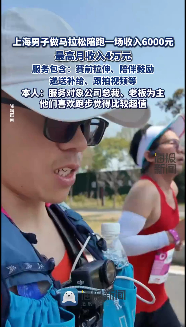 上海男子做马拉松陪跑一场收入6000元:服务对象以公司总裁、老板为主
