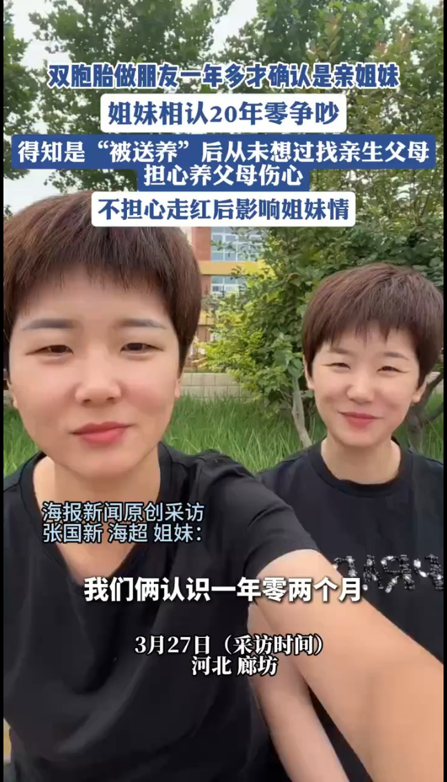 双胞胎做朋友一年多才确认是亲姐妹,姐妹相认20年零争吵