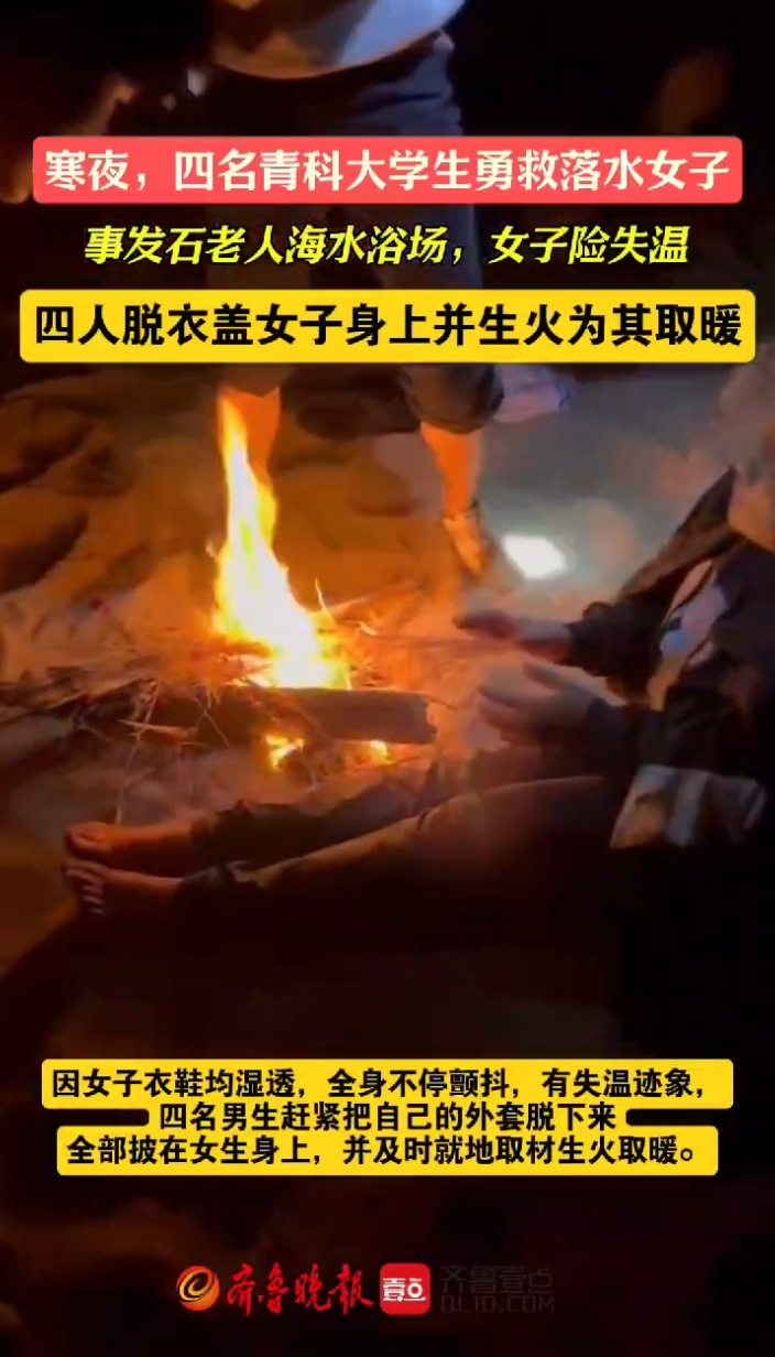 琴视频丨寒夜中,四名青科大学生勇救落水女子