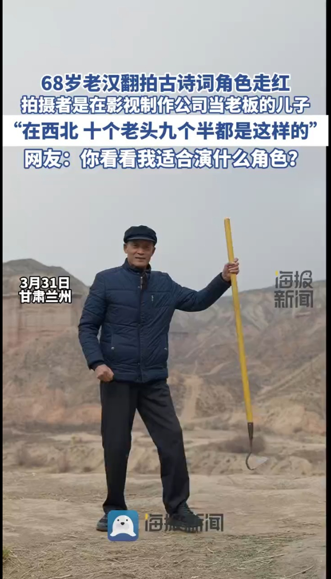 68岁老汉翻拍古诗词角色走红,儿子:在西北,十个老人里九个半是这样的