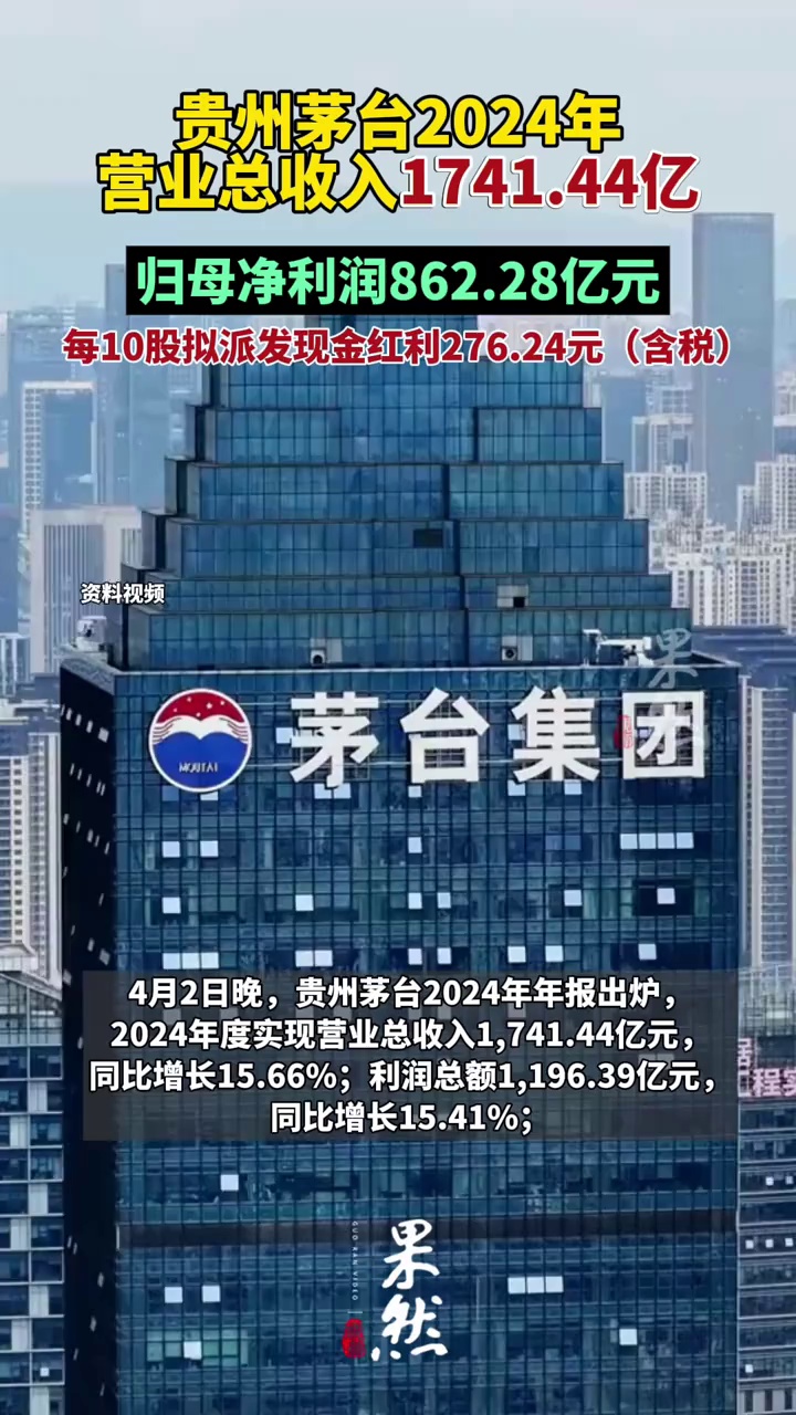贵州茅台发布2024年年报,实现营业总收入1741.44亿元