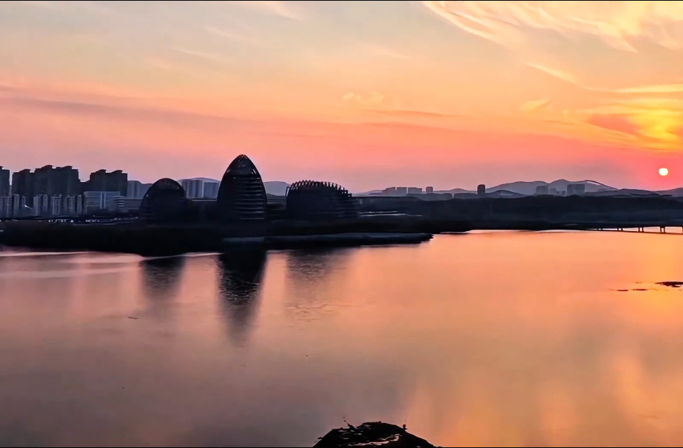 “山东邂逅美”短视频大赛丨鎏金晚霞映天平,大桥静卧画卷中