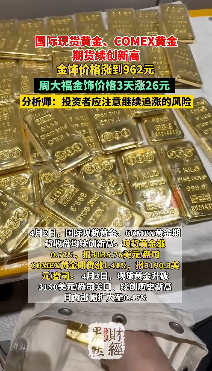 果然财经|国际现货黄金续创新高,金饰价格涨到962元