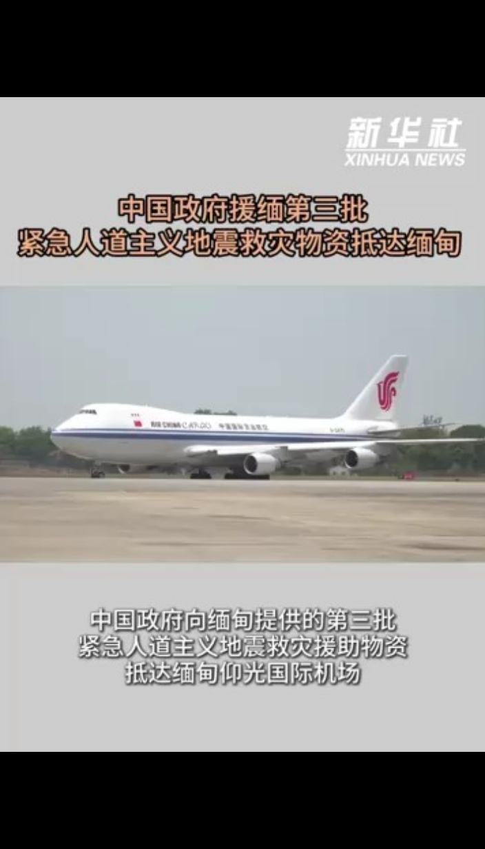 中国政府援缅第三批紧急人道主义地震救灾物资抵达缅甸