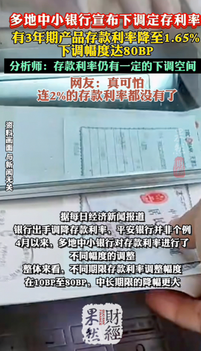 果然财经|多地银行下调定存利率,有3年定存利率降至1.65%