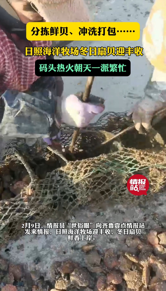 情报站|鲜香上岸!日照海洋牧场冬日扇贝迎丰收,码头一派繁忙