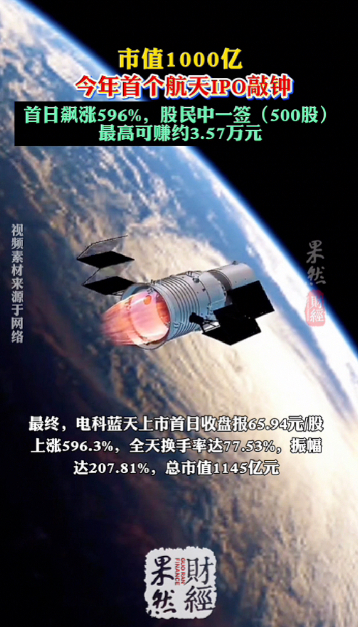 果然财经|市值千亿!今年首个航天IPO敲钟,首日飙涨596%