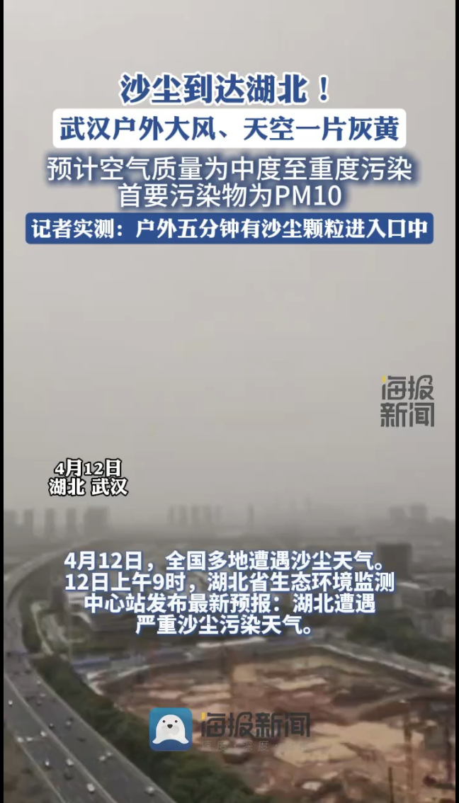 沙尘到达湖北!武汉户外大风,天空一片灰黄
